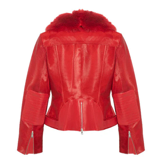Women's Red Tara Calf Faux Shearling Leather Jacket
