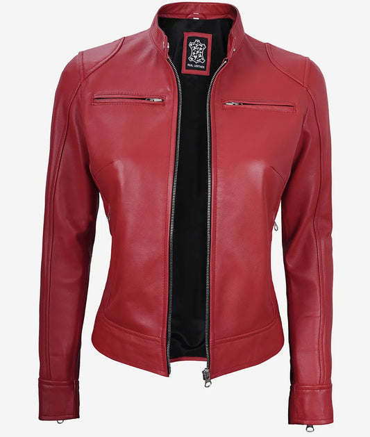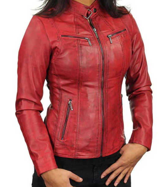Vendor:Jacket-HitWomen's Red Real Leather Moto Jacket