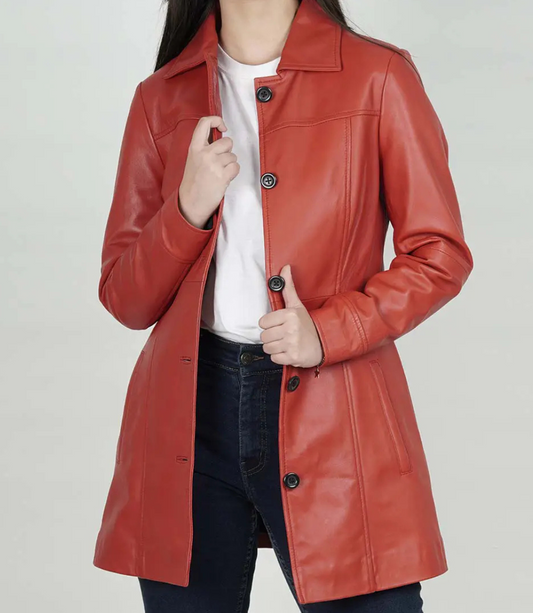 Vendor:Jacket-HitWomen's Red Real Leather Coat