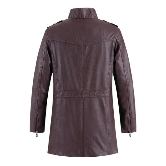 Vintage Casual Wine Stand Collar Leather Biker Coat
