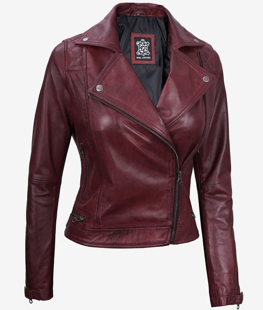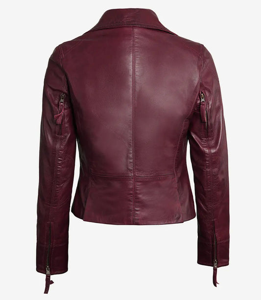 Women's Maroon Real Lambskin Leather Moto Jacket