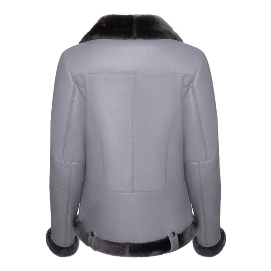 Women's Grey Merino Shearling Black Fur Leather Jacket