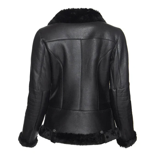 Women's Spanish Merino Black Faux Shearling Leather Jacket