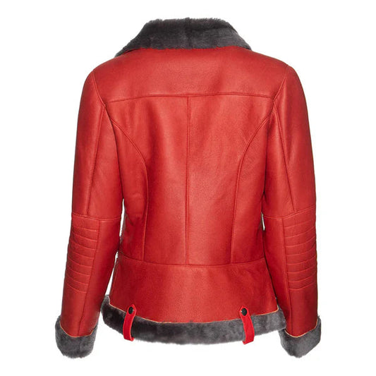Women's Spanish Merino Green Faux Shearling Leather Jacket