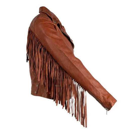 Women’s Tan Brown Burnt Fringe Leather Jacket
