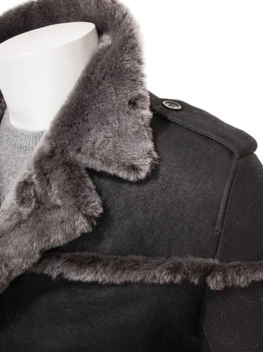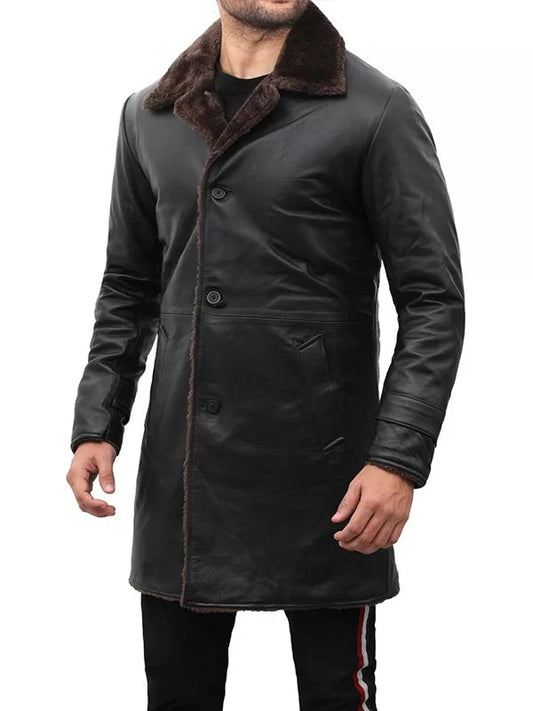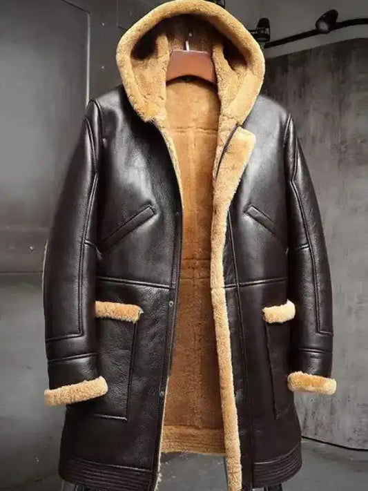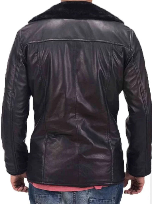 Vendor:Jacket-HitMens Leather Shearling Black Coat