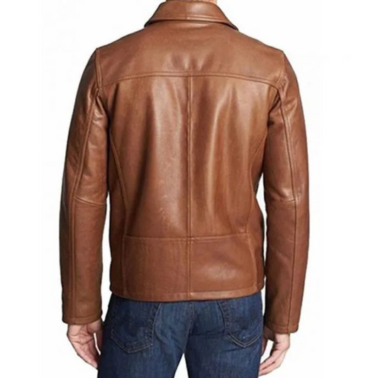 Mens Reacher Style Brown Sheepskin Leather Coat