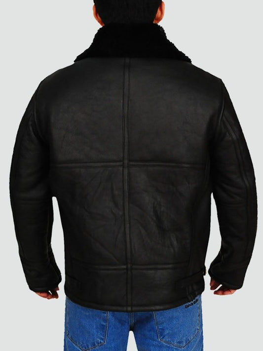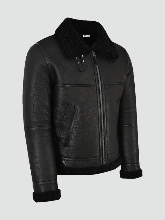 Vendor:Jacket-HitMens Jet Black Shearling Jacket