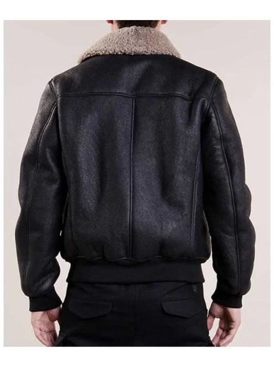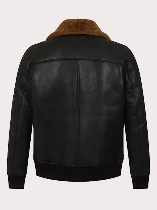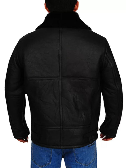 Mens Black Aviator Sheepskin Bomber Shearling Jacket
