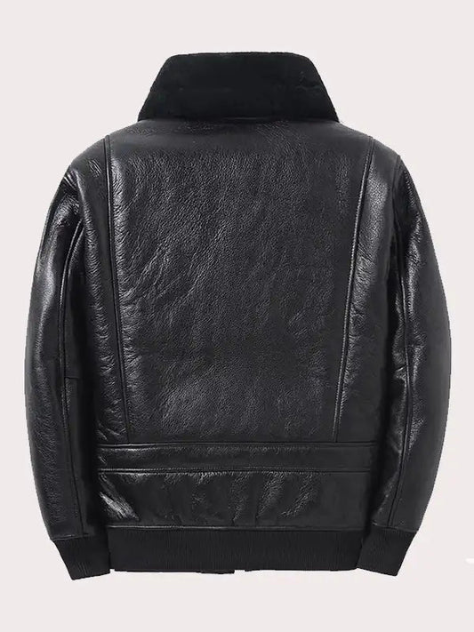 Mens Black Aviator Shearling Sheepskin Bomber Jacket