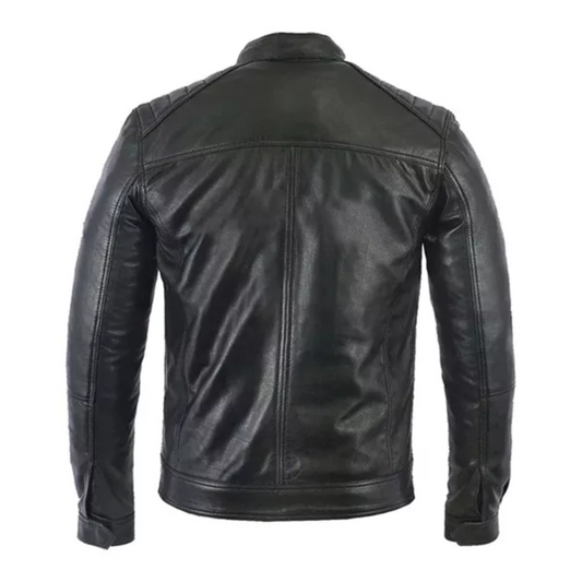 Vendor:Jacket-HitMens Black Leather Biker Moto Jacket