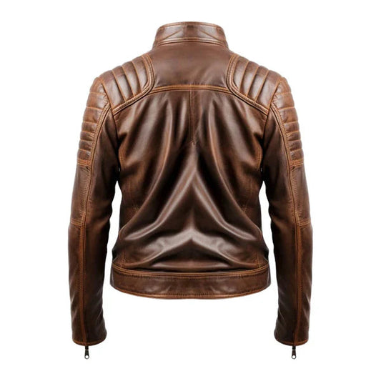 Men's Brown Quilted Cafe Racer Leather Jacket