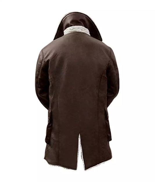 Men's Brown Bane Sherpa Coat - Genuine Leather Swedish Winter Coat