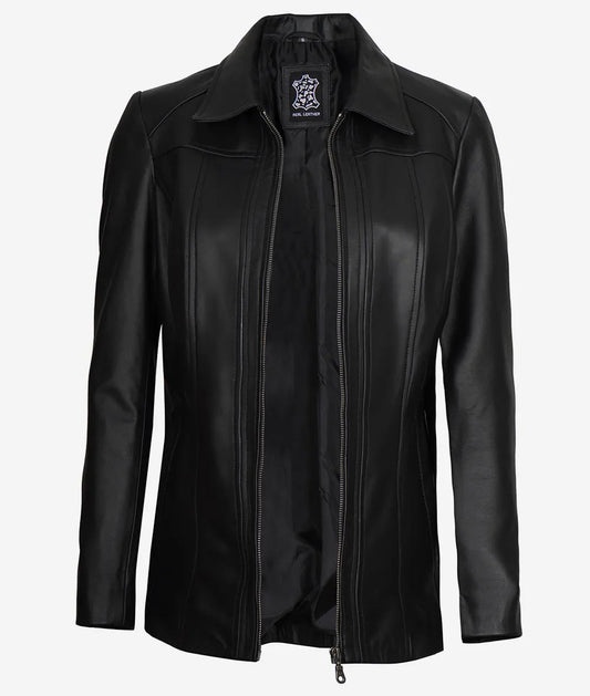 Marsha Women's Black 3/4 Long Leather Coat