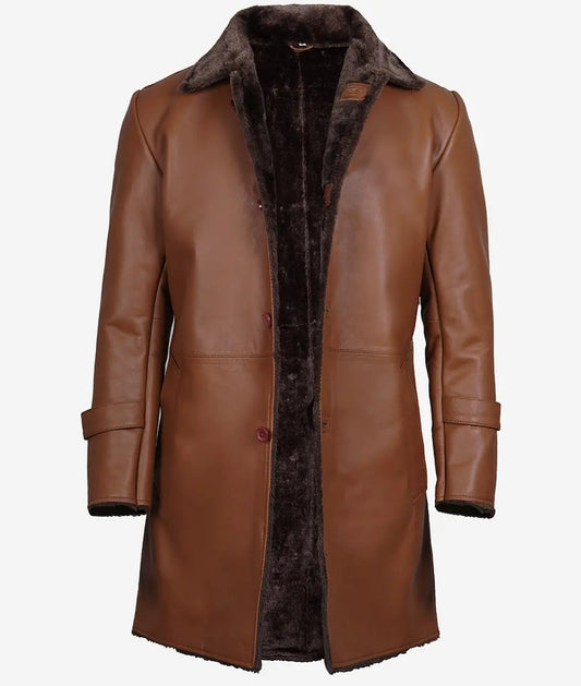 Men's 3/4 Length Shearling Leather Coat in Cognac