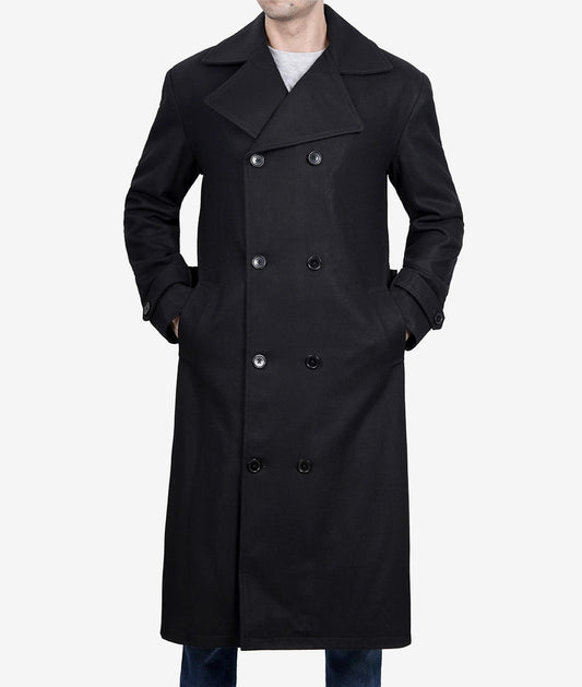 McGhee Men's Black Trench Long Wool Coat