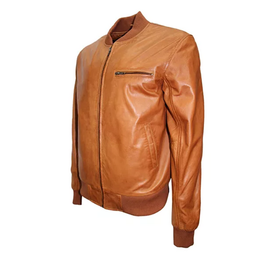 Vendor:Jacket-HitMen Casual Tan Brown Bomber Jacket