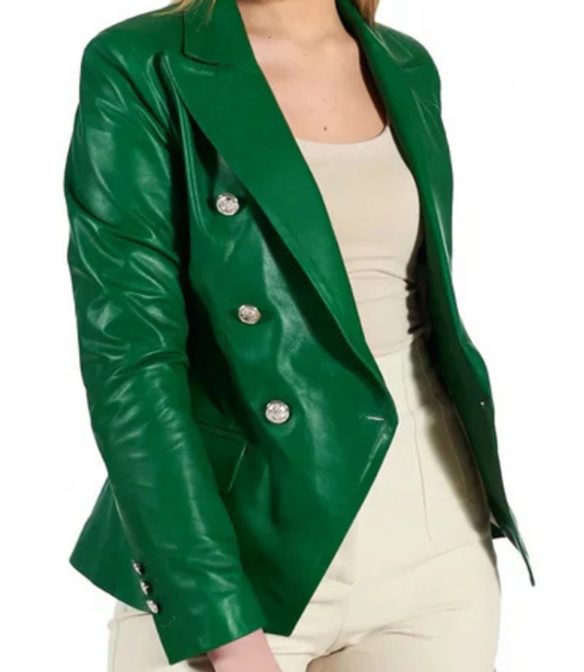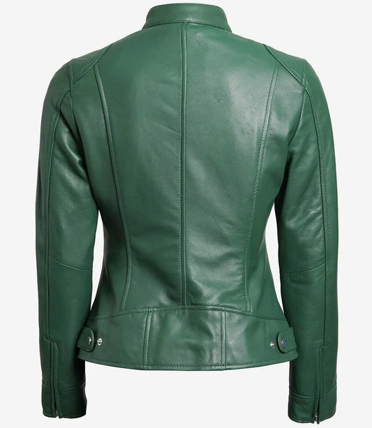 Women's Green Asymmetrical Moto Belted Leather Jacket