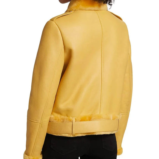 Women's Cognac Shearling Straight Moto Leather Jacket