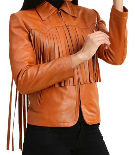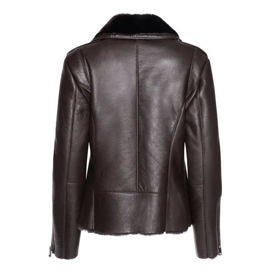 Women's Brown Tara Calf Shearling Fur Leather Jacket