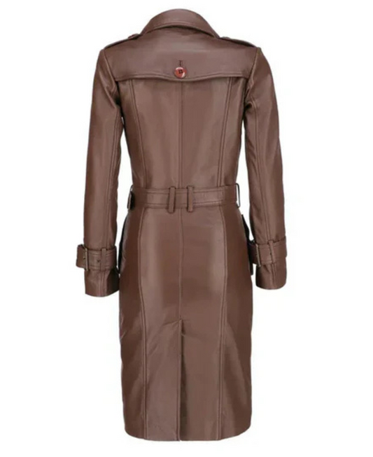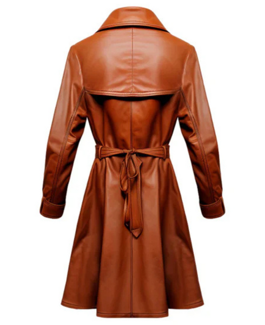 Women's Brown Leather Coat | Fur Trim Removable Hood