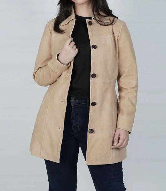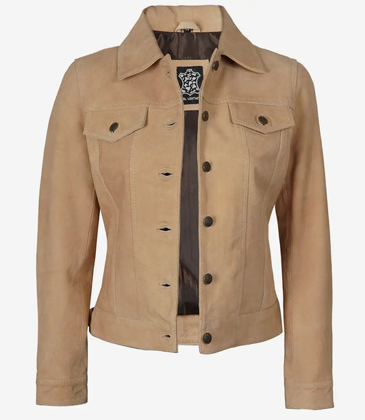 Vendor:Jacket-HitWomen's Camel Button Down Suede Coat