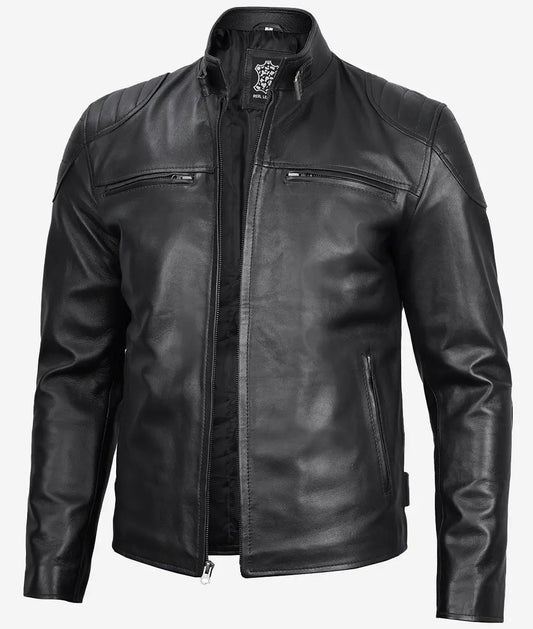 Men's Cafe Racer Black Lambskin Leather Jacket
