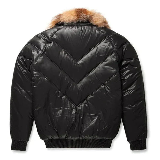 Men's V-Bomber Bubble Faux Shearling Black Leather Jacket