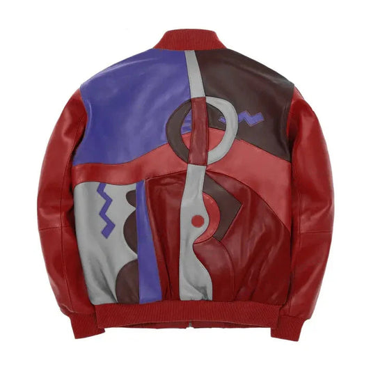 Men's Stylish Red Pecaso With Purple Leather Jacket