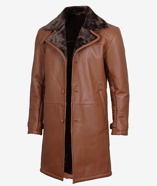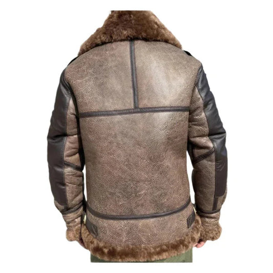 Men's V-Bomber Faux Shearling Brown Leather Jacket