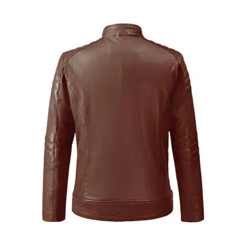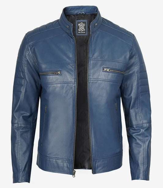 Men's Stylish Slim Fit Blue Cafe Racer Leather Jacket