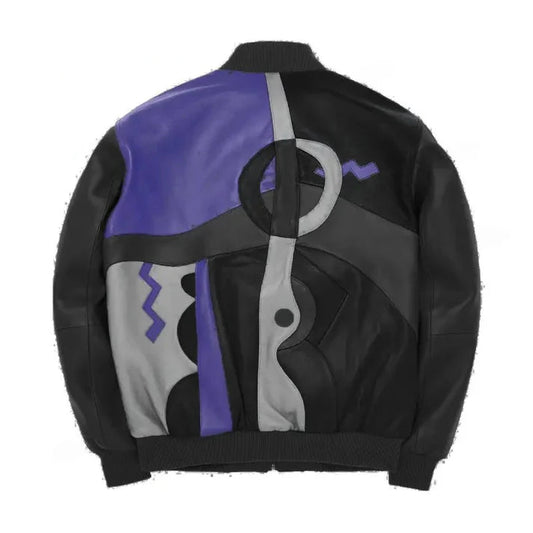Men's Stylish Black Pecaso With Purple Leather Jacket
