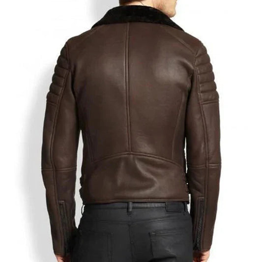 Men's Faux Shearling Fur Brown Leather Jacket