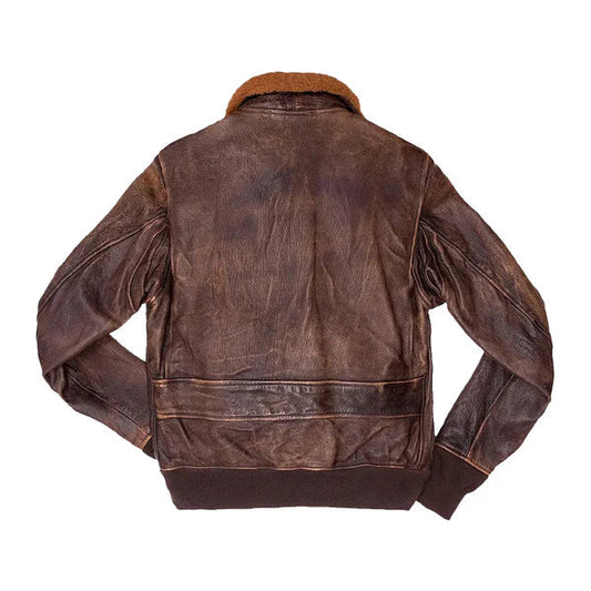 Men's G-1 Distressed Faux Shearling Brown Bomber Jacket
