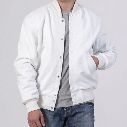 Men's Full White Leather Varsity Jacket