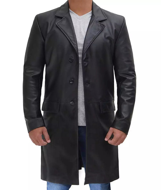 Men's Genuine Cowhide Black Long Leather Coat