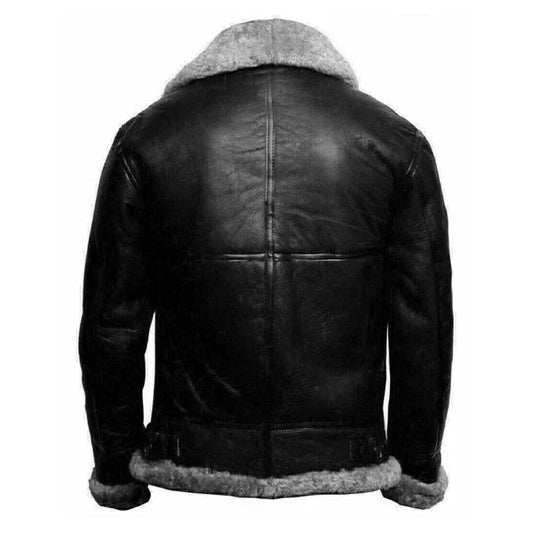Men's Faux Shearling Flying Black Leather Jacket