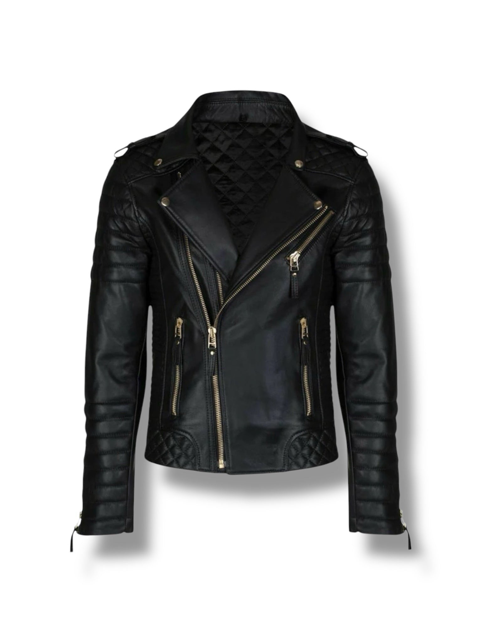 Accented with bold golden hardware, this jacket delivers a striking visual contrast while offering protection and performance on the road. Its tailored fit and superior craftsmanship make it a reliable go-to for both casual wear and high-speed adventures.
